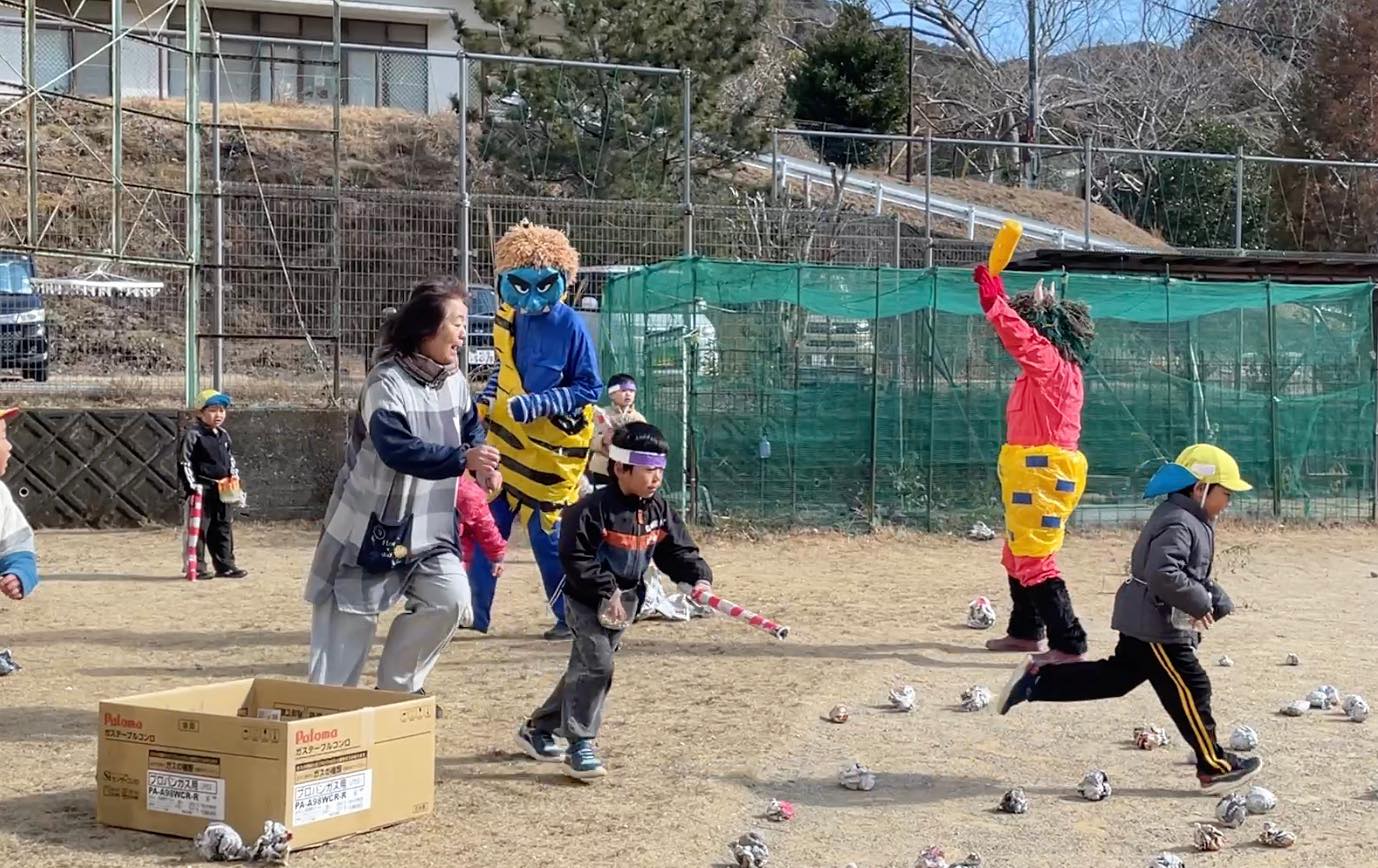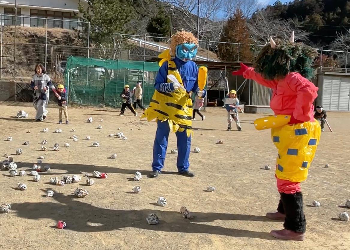 準備は万端でも、いざ鬼の姿をみると怯んでしまう子どもたち。でも勇気をもって立ち向かっていました。