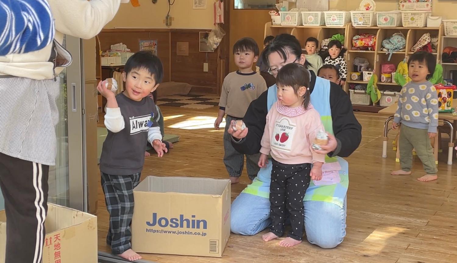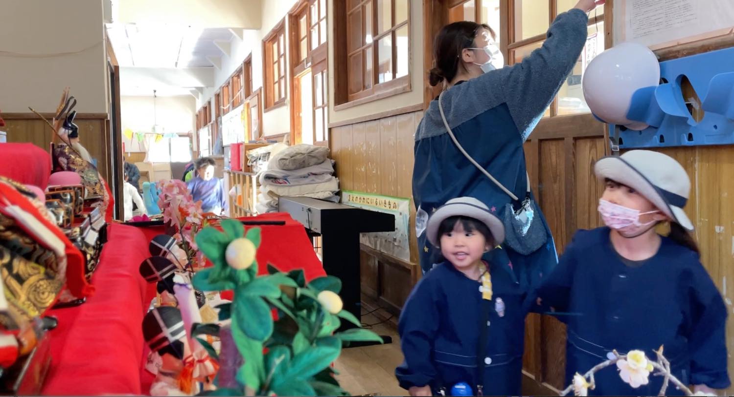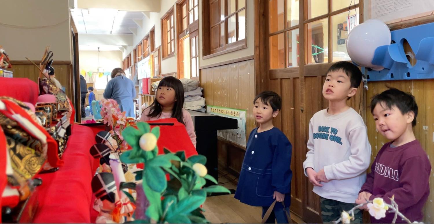 「春がくるね〜」と話していると、次の日、保育園には雛人形が飾られていました。